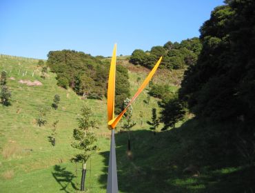 Inspired by the work of the American artist George Rickey, particularly his piece in the Gibbs' collection, Phil Price started exploring kinetics in the late 1990s. He did some experimenting with motor-driven forms but his focus has always been wind-activated works.By 2003 he had designed and built four such works and was keen to continue exploring the potential of kinetics in large-scale sculpture. In 2008, he created the hugely successful Fulcrum exhibition which toured Waiheke, Queenstown and Melbourne.