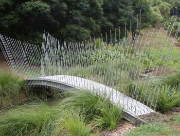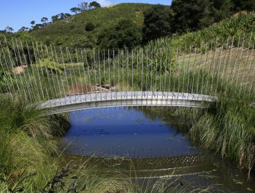 Virginia King creates work from an extensive selection of materials addressing issues of ecology and survival and the delicate balance between sustainability and progress.Other site-specific sculpture includes Koru, Brick Bay, Rewarewa Creek Footbridge, Waitakere City, and Aramarama Millennium Footbridge, Auckland.King completed Reed Vessel in 2004, an interactive sculpture installed in Docklands Park, Melbourne and was commissioned in 2007 to create the David Lange National Memorial in Otahuhu.