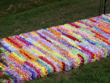 Jurisich was awarded the 2006 Temporary Sculpture Commission at Connells Bay. She created The Long Lei, a spectacular addition to the Connells Bay collection during the summer of 2006/2007. In making this temporary installation piece, Gaye Jurisich used over 3000 lei of brightly coloured artificial flowers. Each lei was individually hand-wrapped around chicken wire on a long wooden frame. Out of these she created a huge temporary flower bed, 14 metres long, 2.3 metres wide.