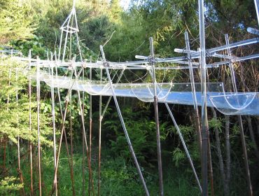 Pickernell and Dell were award the 2007 Temporary Sculpture Commission at Connells Bay and created a perspex waterway elevated on a scaffold of steel and copper. Their work referenced the abundance of spring water at Connells bay contrasted with the water supply issues that generally exist on Waiheke Island. Light, sound and movement are all ephemeral ad hoc elements were well suited to the artists? exploration of the environment, the weather and the passage of time.